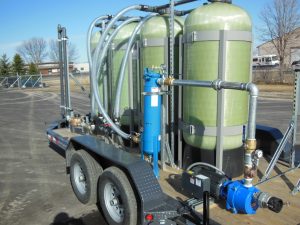 H2K provided an economical highly engineered system design with different media types for maximizing the removal of PFAS compounds. The ability to switch between media as site conditions changes over time allows operations flexibility. We manufacture a wide range of treatment systems for PFOA, PFOS, and many other types of contamination. Larger portable water treatment systems are available to meet the demands of any site. Construction options include trailer, open-skid, and containerized systems, installed in wood-frame, steel-frame and other enclosure types. One common package includes a set of (4) 1,000 lb. carbon vessels with bag filters and feed pump on a 20’ length trailer to provide 100 GPM water treatment. Call our engineering team today and we’ll help design and build your next portable water treatment system.